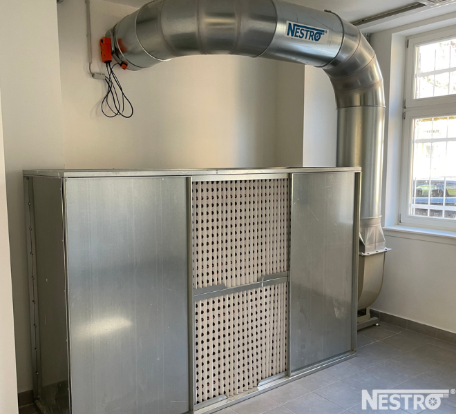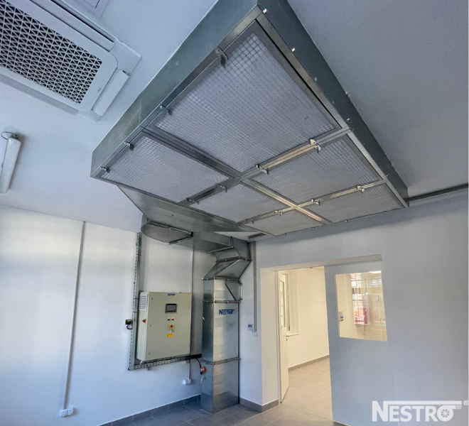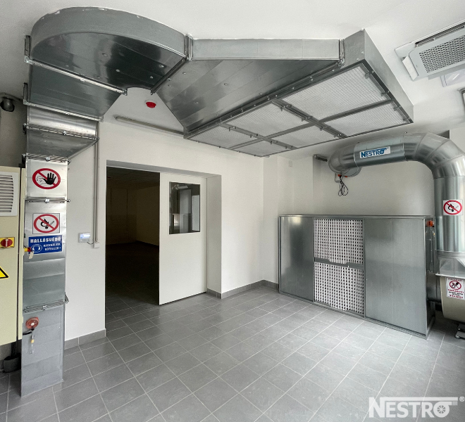 A Dél-pesti Centrumkórház részére a Nestro Hungária Kft. egy korszerű, ipari festékköd elszívó rendszer tervezését és kivitelezését valósította meg, amely kifejezetten vizes bázisú festékek elszívására lett optimalizálva.