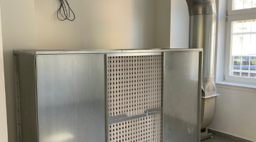 A projekt célja az volt, hogy a festési munkafolyamatok során keletkező egészségre ártalmas festékköd hatékonyan eltávolításra kerüljön, biztosítva a tiszta és biztonságos munkakörnyezetet az egészségügyi intézmény műszaki területén.