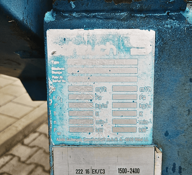Légteljesítmény: 29.900 m3/h Motor teljesítmény: 32,5 kW Statikus nyomás: 3100 Pa Fordulatszám: 1640 1/min Ár: 3100 EUR+ÁFA